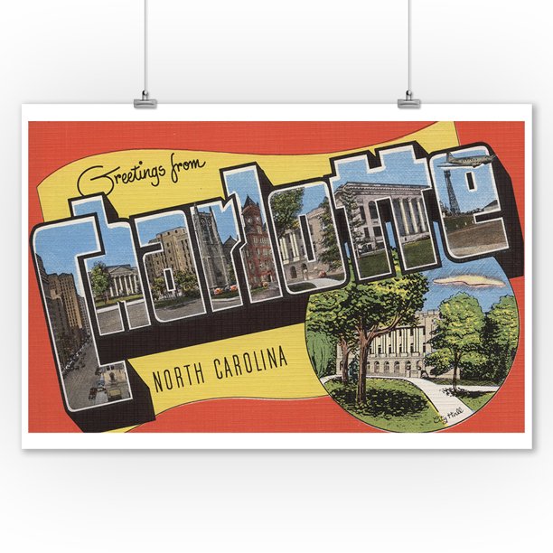 Greetings From Charlotte North Carolina 9x12 Art Print Wall Decor Travel Poster Walmart Com