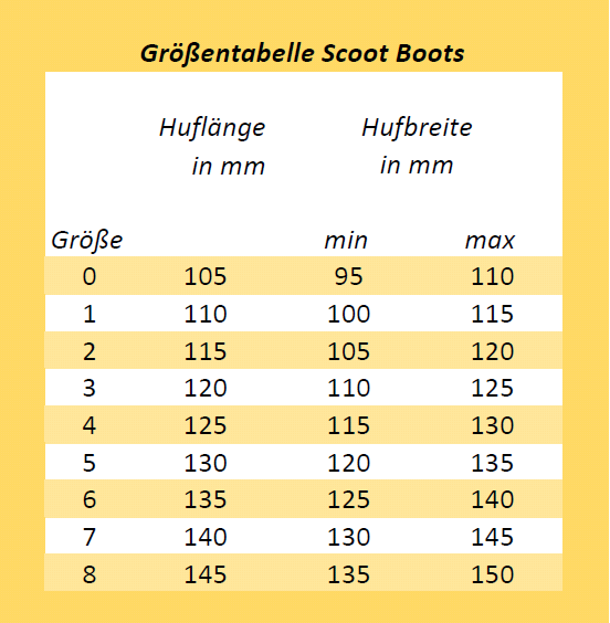 Grossenbestimmung Hufschuhe Scootboots Scoot Boots Deutschland